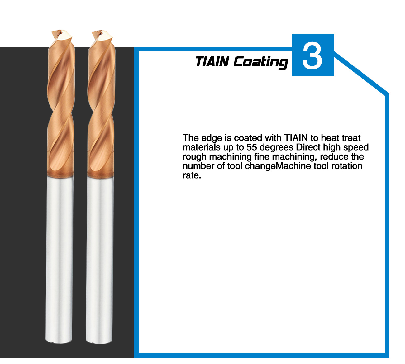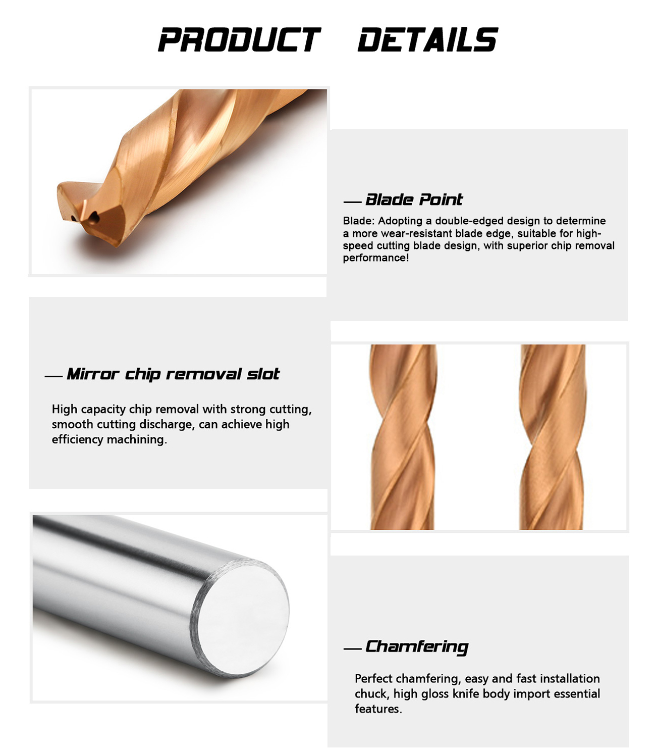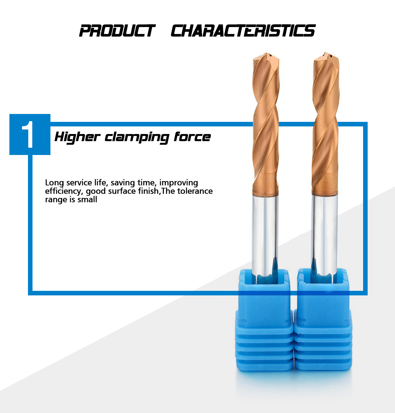 Ensure good performance and chip forming No chip blockoing, easy grinfing Unique design of flutes Improve dry maching and L/D ratio of drilling chip performance Improve surface quality of hole machining