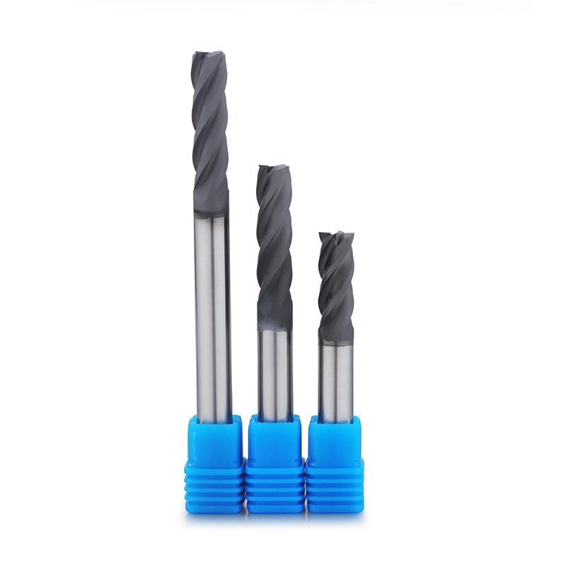 • Aluminum end mills (with high rake angles and polished flutes)